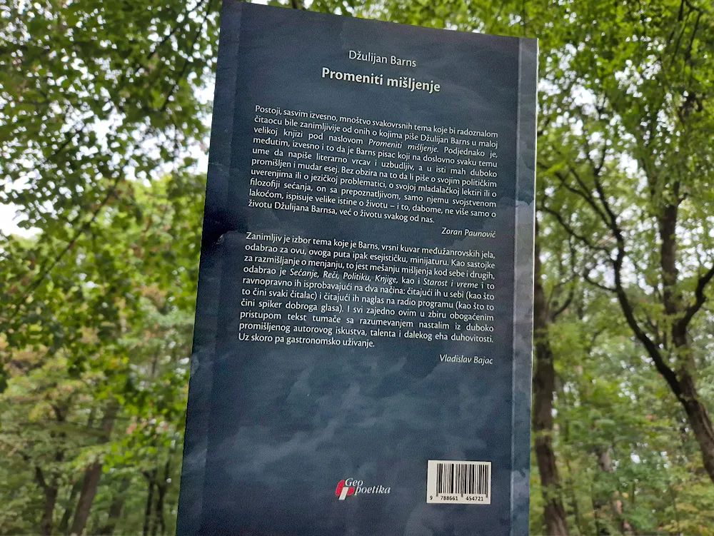 KNJIGA ZA VIKEND – Tokom vikenda, za čitanje vam preporučujemo knjigu „Promeniti mišljenje”  Džulijana Barnsa, u kojoj spaja svoju prepoznatljivu duhovitost, ironiju, filozofsku pronicljivost i suptilan izraz. Ovaj britanski pisac piše o temama: umetnost, jezik, sećanje, politika, starost, pristupajhući im s jedinstvenom intelektualnom radoznalošću i toplinom, pretvarajući ih u duboko lične teme, a istovremeno univerzalne refleksije o ljudskom iskustvu.