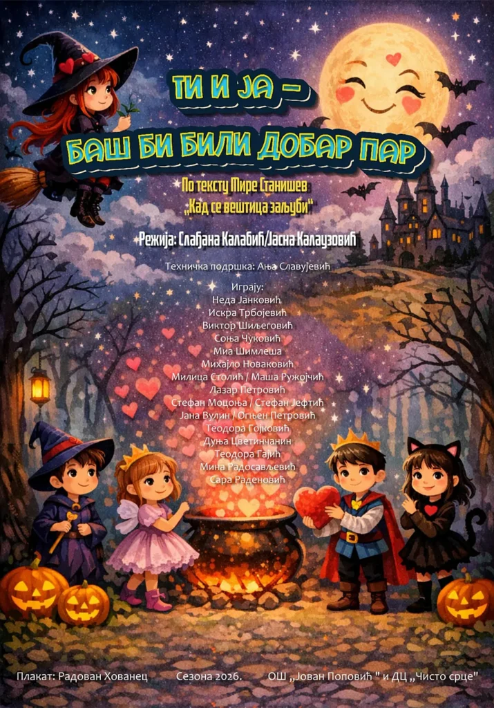 Kultura Popovićevci sa dve predstave na Smotri 02/04/2026 Još iz kategorije Kultura: Pozorište „Dobrica Milutinović” premijerom predstave „Ljubavnik” obeležilo Svetski dan pozorišta i dan svoje kuće 30/03/2026 Knjiga za vikend: KAKO ŽIVE PRIČE 27/03/2026 Željka Avrić među laureatima „Brankovih dana” 25/03/2026 SREMSKA MITROVICA – Dramsko stvaralaštvo je pečat Popovićeve škole i predstavlja kontinuiran rad od teksta do pozornice. Pozorišni rad sa učenicima godinama uspešno neguju nastavnice srpskog jezika Jasna Kalauzović i Slađana Kalabić. Ove godine na Opštinskoj smotri prijavljene su dve predstave Popovićevaca, i nakon odluke selektora Zoltana Fridmana obe predstave su, kao predstavnici Mitrovčana, ostvarile plasman na Zonsku smotru koja će se održati krajem aprila u Pećincima. Predstava „Kaži teti – dobar dan” je adaptacija istoimene zbirke priča velike Jasminke Petrović. Govori o nestašlucima jedne vesele družine koja odrasta u istom dvorištu. Mašta i stvarnost su u ovoj predstavi, kao i u detinjstvu neraskidivo povezani. Druga predstava Popovićevaca nosi naziv „Ti i ja- baš bi billi dobar par”. Reč je o tekstu „Kad se veštica zaljubi” Mire Stanišev i u stvari ovo je jedna bajkovitapredstava, starapriča o iskonskoj težnji čovekovoj da popravi svet, dazlopretvori u dobro, ružno u lepo. Obe predstave su režirale profesorice Jasna Kalauzović i Slađana Kalabić. Talentovani, mladi glumci kroz dramski proces sarađuju u grupi, aktivni su u svim fazama rada od čitanja do razumevanja teksta, preko podela uloga, do scenskog pokreta i izražajnog govora. Obe predstave nose snažne poruke, dinamiku i uigranost ansambla. Selektor je prepoznao trud, talenat, posvećenost mladih glumaca što je rezultiralo njihovim plasmanom na viši rang takmičenja. Pozorišni rad, kao simbol Popovićevaca, postao je više od vannastavne aktivnosti – on je postao prostor rasta, učenja i zajedništva.