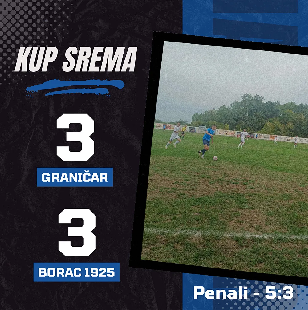 Fudbal, Sport Boljim izvođenjem penala domaći tim izborio plasman u narednu rundu 06/09/2025 Još iz kategorije Fudbal: Borac slavio sa 4:2 u efikasnom meču protiv ekipe Kameni 18/11/2025 Divošani bez bodova u Bačkom Jarku 17/11/2025 Borac se vraća pobedama – ubedljiva domaća partija 03/11/2025 ADAŠEVCI. FK Graničar Adasevci – FK Borac 1925 Martinci 3:3 (3:0), penali 5:3. U pretkolu Kupa PFS Srema viđena je prava fudbalska drama u Adasevcima. Domaći Graničar i gostujući Borac 1925 odigrali su uzbudljiv meč koji je nakon velikog preokreta završen rezultatom 3:3, a posle izvođenja jedanaesteraca domaći tim izborio je plasman u narednu rundu. Prvo poluvreme proteklo je u potpunoj dominaciji domaćina, koji je stekao ubedljivo vođstvo od 3:0. Međutim, nastavak je doneo potpuno drugačiju sliku na terenu. Trener Borca na poluvremenu je uveo u igru Savića Vukašina, koji je odmah uneo živost u napadu i ubrzo postigao pogodak za 1:3, vraćajući svoj tim u meč. Nakon toga inicijativu je preuzeo Stevanović Mirko, koji je igrao od samog početka i sjajnom partijom u drugom poluvremenu postigao dva gola – za 2:3 i konačnih 3:3. Uprkos velikom povratku i osvojenom drugom poluvremenu rezultatom 0:3, odluka o pobedniku pala je u penal seriji. Više sreće i koncentracije imali su domaći fudbaleri, slavivši rezultatom 5:3 i obezbedivši plasman u narednu fazu Kupa.