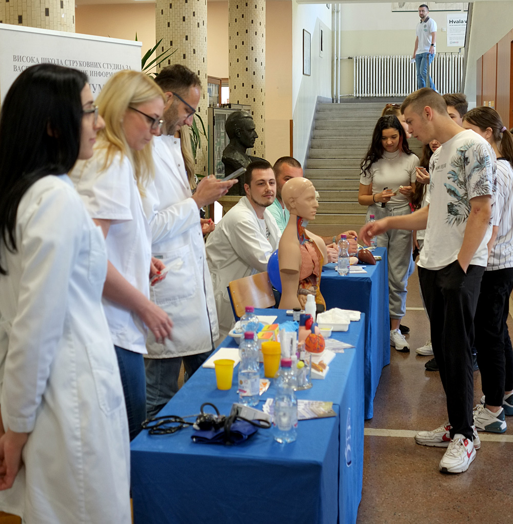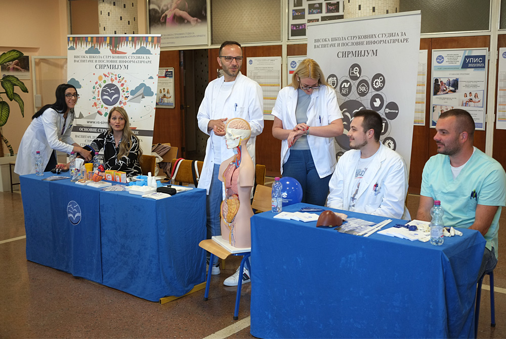 Vesti Smerovi VŠSSVPI – Sirmijum i informatički projekat sa KzM 19/05/2022 Još iz kategorije Vesti: Dan žalosti u Sremskoj Mitrovici 20/10/2025 Dejan Stević: Utvrdili smo sve neophodne činjenice, verovatno nepropisna brzina uzrok udesa 19/10/2025 Gradonačelnik Nedimović podelio najnoviju informaciju o stanju putnika u bolnici 18/10/2025 Sremska Mitrovica – Promotivne aktivnosti Visoke škole strukovnih studija za vaspitače i poslovne informatičare – Sirmijum predstavljene su tokom Dana otvorenih vrata. Tom prilikom su Kancelarija za mlade i škola predstavili zajednički projekat „Informatička pismenost mladih u Sremskoj Mitrovici”, podržan od strane Pokrajinskog sekretarijata za sport i omladinu. Zainteresovanim budućim brucošima predstavljeni su smerovi koje mogu da upišu u Visokoj školi strukovnih studija za vaspitače i poslovne informatičare – Sirmijum, jedinoj državnoj školi na teritoriji Srema. Dan otvorenih vrata organizovan je u susret obeležavanju 60 godina postojanja ove obrazovne ustanove, koje će biti održano 26. maja. Kako je rekao prof. dr Dejan Savičević direktor VŠSSVPI – Sirmijum: „Danas otvaramo naša vrata za sve buduće studente, za svu mladu populaciju koja ima afiniteta ka ovim profesinalnim delatnostima, neposrednom radu sa decom itd, pokušavamo da pokažemo našim studentima šta im kao škola nudimo od resursa za njihovo dalje obrazovanje, odnosno proces usavršavanja. U našoj školi egzistiraju tri strudijska programa. Jedan je vezan za vaspitače dece predškolskog uzrasta, drugi za strukovnog poslovnog informatičara, a treći isto veoma značajan, koji nije još uvek dovoljno zaživeo i nije dovoljno ispromovisan je smer strukovna medicinska sestra. Promotivne aktivnosti će se nastaviti i u narednom periodu, kada će privredni subjekti i privatne firme prezentovati neke svoje produkte i proizvode koje su radili u saradnji sa nastavnicima visoke strukovne škole.” Studenti i profesori sva tri smera osnovnih strukovnih studija u holu, učionicama i amfitetaru predstavili su kurikulum, programe i praktično pokazali šta zanimanja, za koja obrazuju stručnjake, podrazumevaju. Bilo je organizovano merenje krvnog pritiska i nivoa šećera u krvi. Održane su dve pedagoško-metodičke radionice uz učešće dece Predškolske ustanove „Pčelica”. Ovom prilikom predstavljen je projekat „Informatička pismenost mladih u Sremskoj Mitrovici” Kancelarije za mlade i Visoke škole Sirmijum koji je podržan od strane Pokrajinskog sekretarijata za sport i omladinu, prema rečima Biljane Matić koordinatorke Kancelarije za mlade Sremska Mitrovica. „Biće održane obuke za mlade iz našeg grada koji će se deliti u tri grupe, jedna grupa za vebsajt, druga je za fotošop i treća za informatičke alate gde će mladi moći da se prijave putem onlajn upitnika i iskažu svoje interesovanje. Planiramo da prva obuka krene početkom juna i trajaće tri meseca, a nakon završene obuke polaznici dobijaju setifikate,” rekla je Biljana Matić. Informatička, pismenost veoma je važna kao adekvatan i jedini odgovor na izazove s kojima će se omladina sresti u nastavku školovanja, pri zapošljavanju, profesionalnom napredovanju i daljem snalaženju u svetu. Predstavljajući projekat dr Zdravko Ivanković profesor informatičke grupe predmeta u ovoj visokoj školi rekao je: „Radiće se u tri radionice, prva radionica su osnovni informatički alati, druga je fotošop i treća internet programiranje. Radimo na informatičkoj pismenosti mladih jer u 21. veku, pored jezičke i matematičke pismenosti, jako je važna informatička pismenost. U cilju toga radićemo na alatima za obradu teksta, tabelarnu obradu podataka, za prezentacije i pretraživanje interneta i snalaženje na internetu. U drugoj radionici ćemo raditi sa najpoznatijim programom za obradu slike, radićemo kompoziciju slike, primenu filtera, pripremu za štampu, pripremu za internet prikaz itd. Internet programiranje će obuhvatiti rad sa osnovnim jezicima za kao što su HTML, CSS, javaskript jer u današnje vreme gotovo nijedna firma ne postoji, a da nema svoj digitalni prikaz na internetu. Cilj projekta jeste da omogućimo mladima da što lakše uplove u ovaj sektor privrede i biće realizovan u okviru prostorija Visoke strukovne škole.” Visoka škola strukovnih studija za vaspitače i poslovne informatičare – Sirmijum radi u skladu sa najvišim standardima kvaliteta visokoškolskog obrazovanja. Ostvaruje studijske programe u polju pedagoško-andragoških i ekonomskih nauka, na nivou strukovnih studija prvog i drugog stepena i to: Vaspitač dece predškolskog uzrasta, Strukovni vaspitač – studije na daljinu, Strukovni vaspitač – Jedinica van sedišta u Čačku, Strukovni poslovni informatičar, Strukovni master vaspitač i Master strukovni poslovni informatičar. https://www.facebook.com/sremskamitrovicazivi