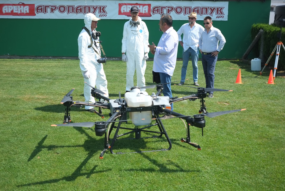 Posle pokazne vežbe na Danima polja, sve je veće interesovanje za primenu agrodrona u održavanju ne samo usvea, nego i travnatih površina, kaže Stevan Savčić direktor Poljoprivredne stručne službe Sremska Mitrovica i dodaje: „PSS je u realizaciji Projekta „Upotreba dron-prskalice u poljoprivredi” i mi smo našu temu nadogradili i želeli smo da pokažemo da dron može da se koristi i za tretmane fudbalskih terena. Konkretno, navodnjavanje terena dovodi do toga je tlo rastresito, tretman traktorom i prskalicom ostaju ripne i dolazi do oštećenja na ovaj način, teren se ne oštećuje. U poljoprivredi tretman dronom radimo na svim kulturama, rezultati će biti iskazani putem sajta i predavanja Zimske škole krajem godine, u poređenju sa običnom prskalicom, odraziće se na sam prinos što je najbitnije za naše poljoprivrednike.”