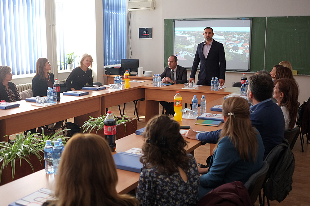 Milan Pašić pomoćnik ministra za predškolsko i osnovno obrazovanje i vaspitanje zahvalio se menadžmentu i profesorima: „Hvala Visokoj školi koja je pokazala otvorenost da bude prva koja će ove projektne aktivnosti realizovati. Današnji sastanak održan je kroz našu etapnu projektnu aktivnost vezanu za inicijalno obrazovanje vaspitača. Aktivnost je vezana za segment koji Ministarstvo prosvete pruža predškolskim, i u ovom slučaju visokoškolskim ustanovama, visokim školama i ima značajan uticaj na poboljšanje programa obrazovanja vaspitača. Zajedničkom energijom, znanjem, trudom i sinergijom unapredićemo svoje kompetencije, povećati znanje, sve sa ciljem unapređivanja sistema predškolskog vaspitanja i obrazovanja. Visoka škola je pokazala izuzetnu spremnost, saradnju i energiju da bude prva uključena u projekat, pored njih i određeni fakulteti, ali ta neka sinergija koju imamo od strane lokalne samouprave, pokrajine, same ustanove, ministarstva i predškolske ustanove koji su kao partneri prepoznati u prethodnom periodu, odlučila je da to baš bude Sremska Mitrovica.”