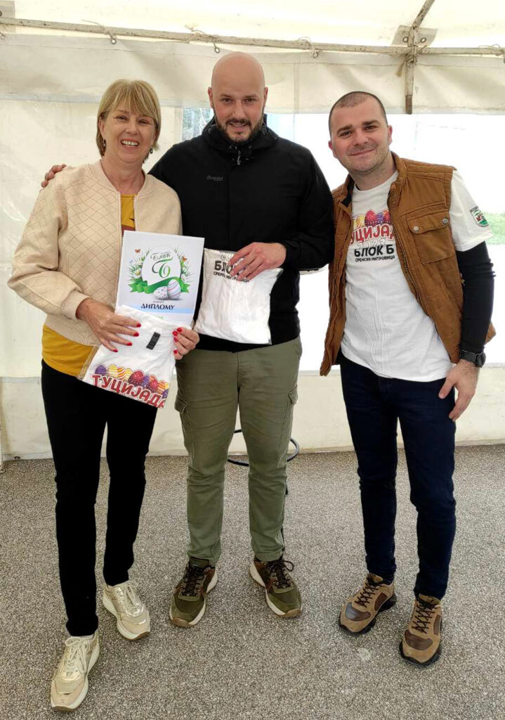 Vesti Održana „Tucijada” u „Bloku B” 17/04/2023 Još iz kategorije Vesti: Noćas počinje zimsko računanje vremena 25/10/2025 Epidemiološka situacija gripa na teritoriji Sremskog okruga 24/10/2025 Novi podovi u svim učionicama u Bajićevoj školi 24/10/2025 Sremska Mitrovica – U Mesnoj zajednici „Blok B” održana je treća po redu „Tucijada”, uskršnja manifestacija posvećena najmlađim sugrađanima, koju organizuje MZ „Blok B”, uz podršku Grada Sremska Mitrovica – Gradske uprave za kulturu i sport i Gradske uprave za opšte i zajedničke poslove. Ova manifestacija, koja za cilj ima druženje, očuvanje tradicije i negovanje verskih običaja, uz širenje ljubavi i prijateljstva, privukla je veliki broj posetilaca, najviše najmlađih sugrađana, koji su učestvovali u uskršnjim igrama. Biralo se najlepše jaje, najjače jaje, najlepša korpica, kao i ime za Uskršnjeg zeku. Za kulturno-umetnički deo programa bili su zaduženi etno grupa „Srpski dom“, orkestar Zorana Čamprage i dečiji hor „Polifonika”. Prisutni su imali priliku da uživaju u raznim gastronomskim specijalitetima, a svi mališani dobili su korpice sa slatkišima. Kako su istakli organizatori, ova manifestacija je već postala tradicionalna, tako da je novo druženje zakazano za sledeću godinu. Manifestaciji su prisustvovali gradonačelnica Svetlana Milovanović i predsednik Skupštine Grada Vladimir Pavlović sa svojim saradnicima.