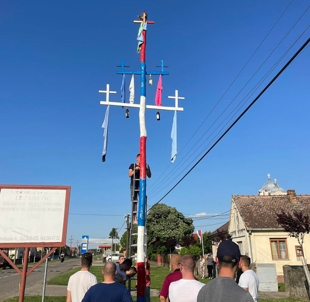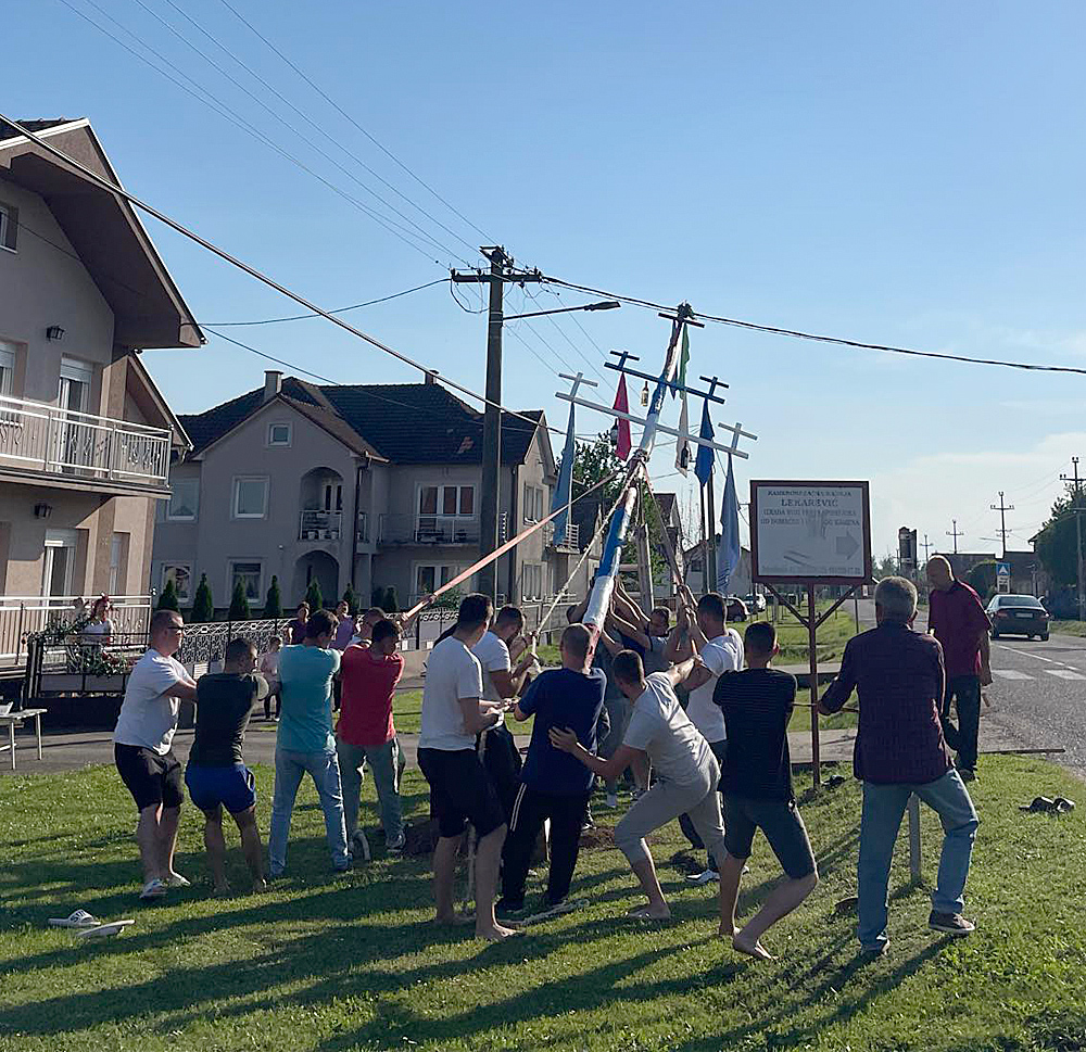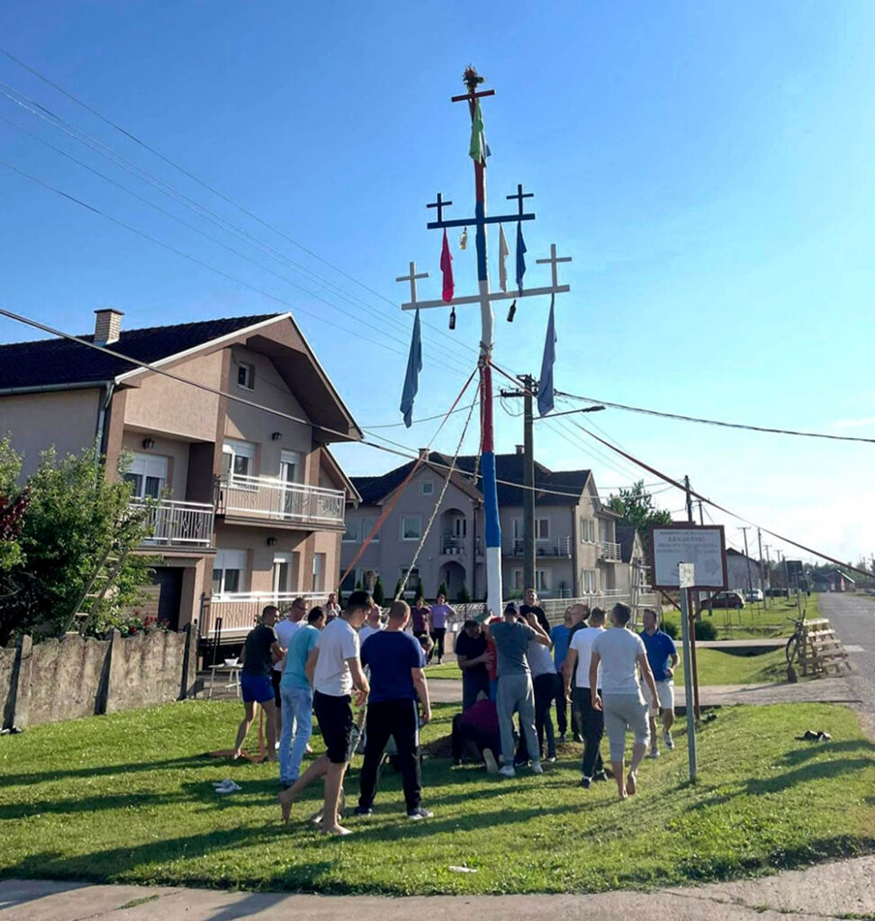 Vesti STARI MAČVANSKI OBIČAJ: Bandera da štiti selo 05/05/2024 Još iz kategorije Vesti: Dani otvorenih vrata u Prehrambeno-šumarskoj i hemijskoj školi: Budući srednjoškolci upoznali obrazovne profile 25/04/2026 Kviz „Šta znaš o Branku Ćopiću?” 24/04/2026 „Baci nešto lepo” u školskom dvorištu: Ekološka svest na delu, za zeleniju budućnost 23/04/2026 ZASAVICA 1 – Baš kao i prošle godine nastavljen je stari običaj dizanja bandere uoči Đurđevdana. U pitanju je paganski, ali običaju koji nosi jaku simboliku i kao takav dugo se neguje na ovim prostorima. „U mnogi mestima dizanje bandere za koju se veruje da će štitit selo od vremenskih nepogoda je zamro, ali u Zasavici 1 se i dalje praktikuje i izuzeztno mi je drago zbog toga, jer na jednom mestu okupio se veliki broj meštana, mladih, starih i svi su dali mali doprinos samom tom činu. Selo se ujedinilo, a atmosfera je bila, nekako bih je opisala, po malo svečarska, vesela, ali i sa dozom ozbiljnosti. Prema starom verovanju ova bandera će štiti našu Zasavicu i useve od vremenskih nepogodna, prvenstveno od grada, jer smo pretežno poljoprivredni kraj,” kaže Danica Pavlović, član saveta Mesne zajednice Zasavica 1. Bandera je, a kako običaji nalažu, posebno pripremljena, ofarbana je u tradicionalne boje srpske zastave – crvenu, plavu i belu, a ukrašena krstovima okićenim maramicama. Podignuta je, objašnjava Pavlović, u neposrednoj blizini hrama Svete Trojice u Glavnoj ulici, a visoka je oko 10 metara. Pre samog podizanja banderu je osveštao sveštenik Milorad Pavlović. Ono što je zanimljivo još, jeste da postoji posebna tehnika kako se ona podiže. Bandera se veže jedecima na nekoliko mesta, a zatim je „najjači” momci iz sela vuku dok je ne usprave. Kada se uspravi zatrpa se u zemlju da stoji stabilno, a zatim se jedan ili dvojica momaka na nju penju kako bi odvezali užad.