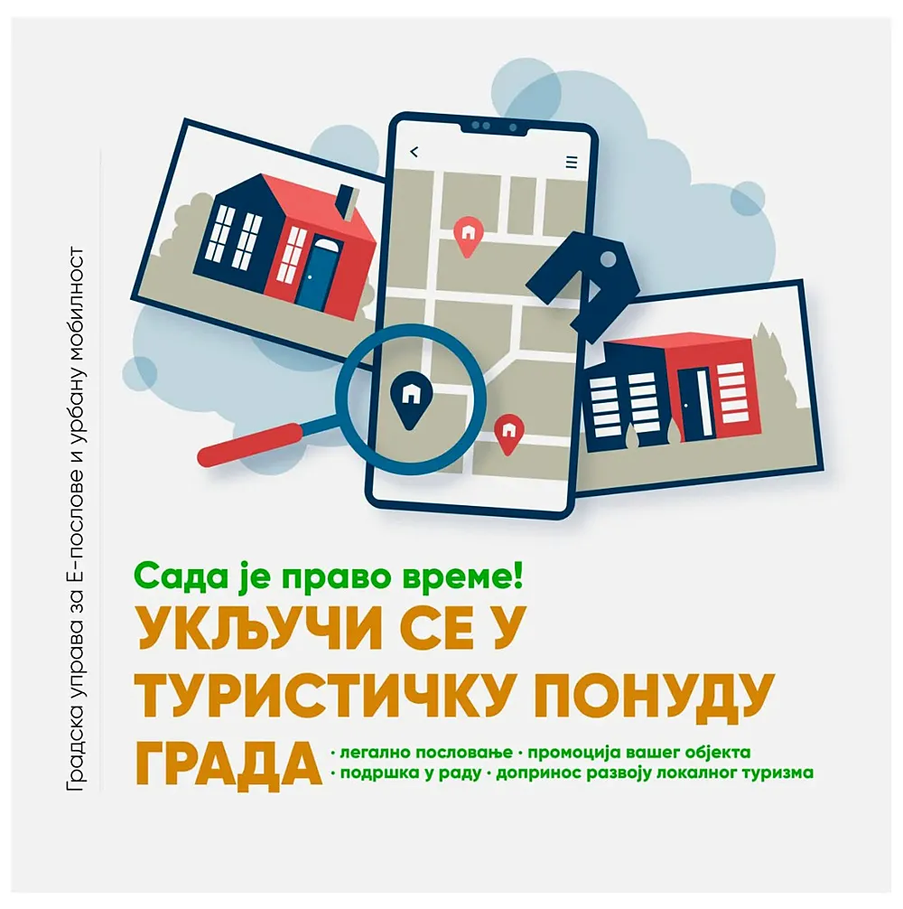 Vesti Poziv za uključenje u turističku ponudu grada 29/05/2025 Još iz kategorije Vesti: Planovi spremnosti i odgovora na javnozdravstvene pretnje 23/10/2025 Prepoznavanje slučajeva trgovine ljudima i podrška žrtvama 22/10/2025 Nadzor u Sirmiumbusu 21/10/2025 SREMSKA MITROVICA – Gradska uprava za E-poslove i urbanu mobilnost poziva vlasnike stanova, kuća i seoskih turističkih domaćinstava da se registruju i postanu deo zvanične turističke ponude grada. Registracijom objekata vlasnici dobijaju mogućnost legalnog poslovanja, promocije svog objekta, podrške u radu i aktivnog doprinosa razvoju lokalnog turizma. Poziv je namenjen svima koji žele da svoju nekretninu izdaju u turističke svrhe i na taj način urede i unaprede turističku scenu grada. Prijava se vrši u prostorijama Gradske uprave za E-poslove i urbanu mobilnost, na adresi Svetog Dimitrija broj 10. Za više informacija: Telefon: 022/617-243 Е-mail: [email protected]