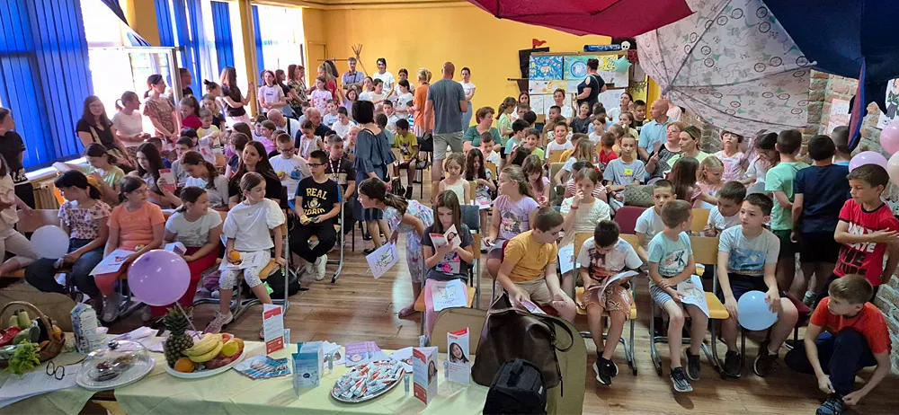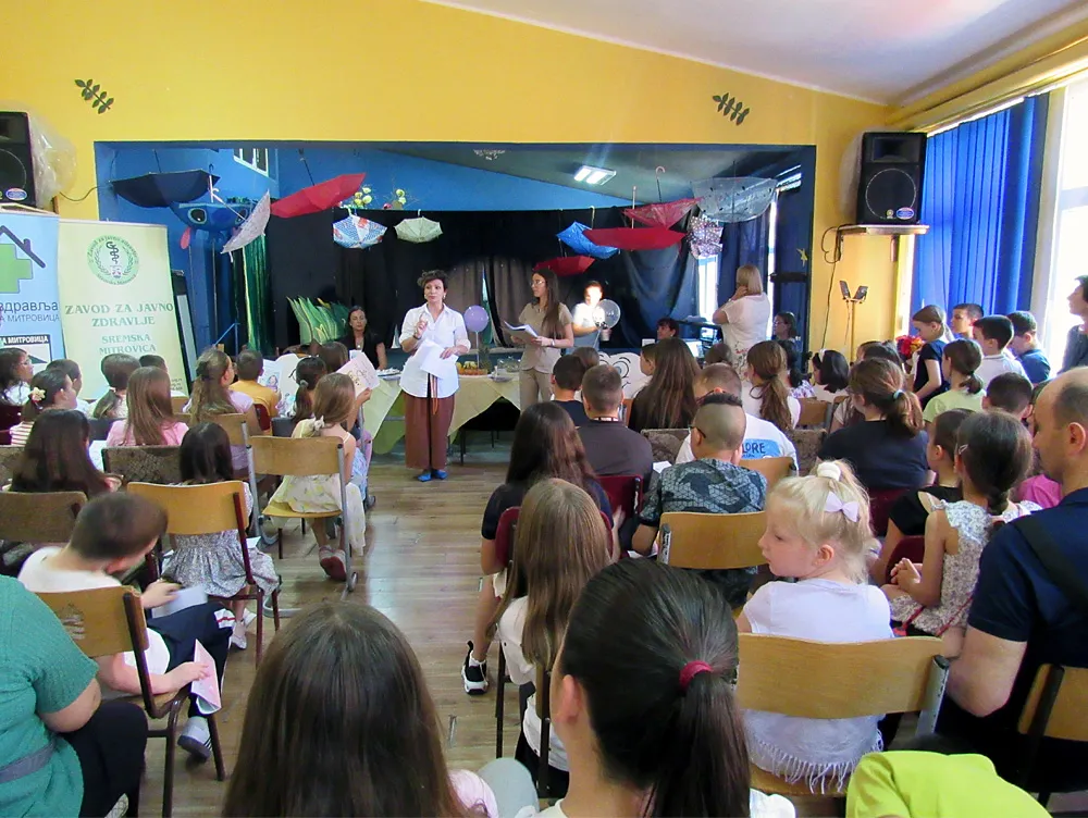 Vesti Nedelja zdravlja usta i zuba 06/06/2025 Još iz kategorije Vesti: Prepoznavanje slučajeva trgovine ljudima i podrška žrtvama 22/10/2025 Nadzor u Sirmiumbusu 21/10/2025 Dan žalosti u Sremskoj Mitrovici 20/10/2025 SREMSKA MITROVICA – U OŠ „Jovan Popović” u Sremskoj Mitrovici održana je završna manifestacija u okviru 35. Nedelje zdravlja usta i zuba, koju su organizovali Stomatološka služba Doma zdravlja i Zavod za javno zdravlje Sremska Mitrovica. Ovim povodom Zavod za javno zdravlje raspisao je likovni i literarni konkurs namenjen učenicima osnovnih škola i deci predškolskog uzrasta na teritoriji Sremskog okruga, na kom je učestvovalo preko 60 likovnih i 10 literarnih radova. Zavod za javno zdravlje uručio je diplome najuspešnijim učesnicima, koji su plasirani na dalje republičko takmičenje. Mnogobrojna publika, koju su činili nagrađeni učenici i predškolci, roditelji i nastavnici, imali su priliku da odgledaju pozorišnu predstavu „Ana u zemlji kišobrana” koju su pripremili i još bolje izveli učenici Popovićeve škole. Ovogodišnji pobednici konkursa za izbor najboljih likovnih i literarnih radova ,,Čuvam svoje zube, ponosim se osmehom” Literarni: Živan Lazić V1, OŠ „Jovan Jovanović Zmaj” Sremska Mitrovica Sara Polić IV1, OŠ „Dobrosav Radosavljević Narod” Mačvanska Mitrovica Vanja Stanimirović VII1, OŠ ,,Jovan Jovanović Zmaj” Sremska Mitrovica Likovni: Nikolija Vlajić II2, OŠ ,,Jovan Popović” Sremska Mitrovica Dunja Milošević IV, OŠ ,,Sava Šumanović” Bingula Emili Ostojin II4, OŠ ,,Jovan Jovanović Zmaj” Sremska Mitrovica Grupni rad DU ,, Dečija Radost“ Irig, objekat ,,Vila” Vrdnik Elena Milovanović II2 ,OŠ ,,Jovan Popović” Sremska Mitrovica Sofija Stanić I2, OŠ ,,Dobrosav Radosavljević Narod” Mačvanska Mitrovica Dušica Mišljenović III3, OŠ ,,Branko Radičević” Šid Mila Stanić IV2, OŠ ,,Dobrosav Radosavljević Narod” Mačvanska Mitrovica Grupni rad DU ,,Dečija Radost“ Irig, objekat ,,Čarolija” Irig Grupni rad DU ,,Dečija Radost“ Irig, objekat ,,Čarolija” Irig Nađa Dragojlović V3, Oš ,,Sveti Sava” Sremska Mitrovica Andrea Gajić VII2, OŠ ,,Sveti Sava” Sremska Mitrovica Iva Krička VI2, OŠ ,,Sveti Sava” Sremska Mitrovica Anđela Drakulić VII3, OŠ ,,Sveti Sava” Sremska Mitrovica Nera Žunić IV2, OŠ ,, Jovan Popović” Sremska Mitrovica