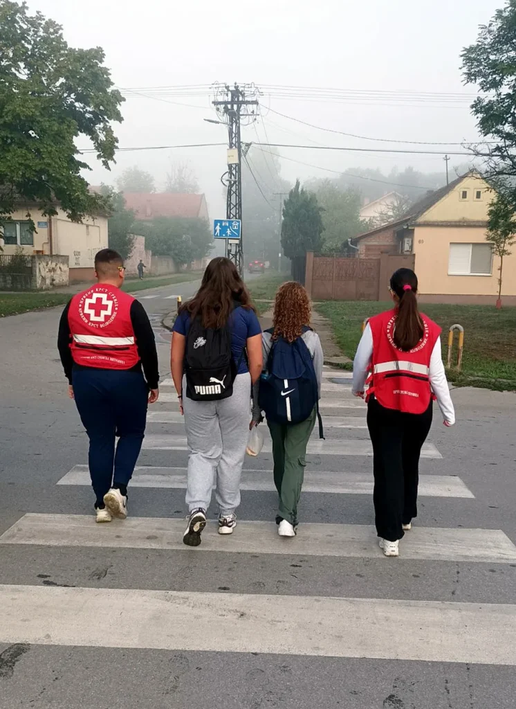 Vesti Bezbednost dece u saobraćaju 16/09/2025 Još iz kategorije Vesti: Znanje, druženje i primeri uspeha na republičkom takmičenju iz statistike u našem gradu 17/04/2026 Položen venac u čast žrtvama Aprilskog rata 17/04/2026 Sajam zapošljavanja – ponuđen velik broj radnih mesta 16/04/2026 SREMSKA MITROVICA – U okviru akcije „Bezbednost dece u saobraćaju”, čiji je cilj promovisanje adekvatnog ponašanja svih učesnika u saobraćaju, kako bi se smanjio broj povređenih i stradalih. Volonteri Crvenog krsta, održali su kratko predavanje deci zaposlenih radnika, koja su krenuli u prvi razred osnovne škole, u firmi „Cooper standard”. Tokom septembra, u partnerskoj saradnji sa predstavnicima Saobraćajne policije i Crveni krst Sremska Mitrovica, realizovao je još jednu aktivnost. Na prometnijim saobraćajnicama, u blizini škola, organizovana su dežurstva na pešačkim prelazima u saradnji sa patrolom saobraćajne policije, gde su volonteri Crvenog krsta učenicima prvih razreda pomagali u prelaženju, i tom prilikom delili promotivni materijal.