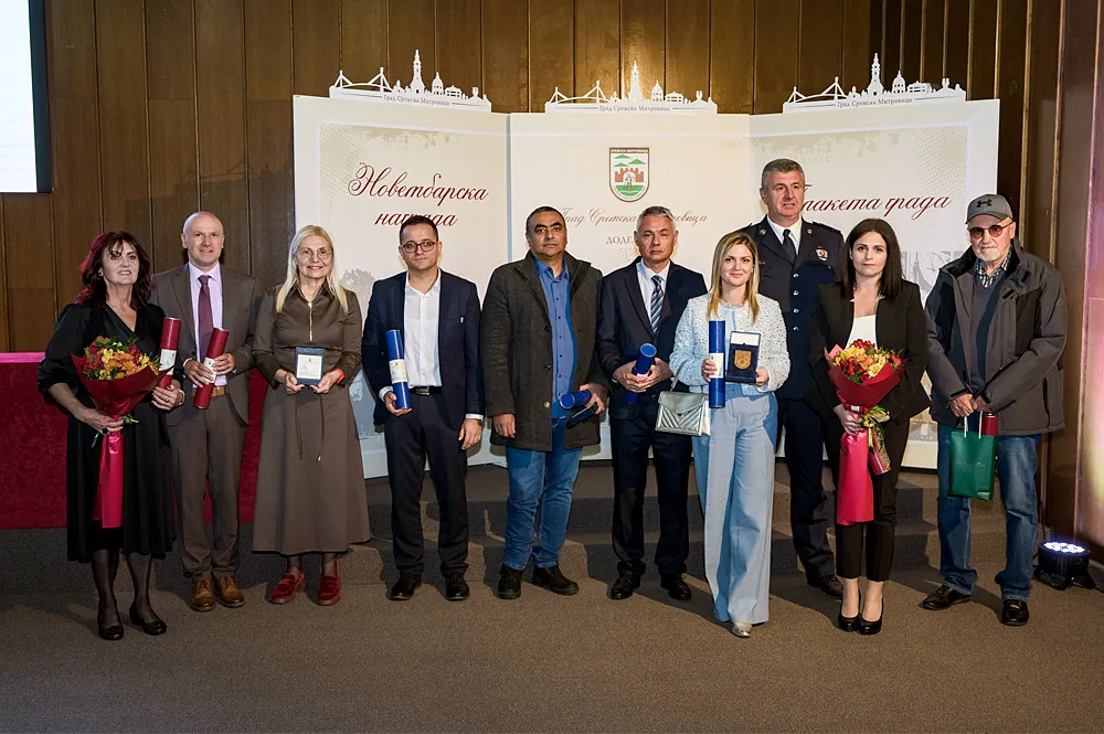 Vesti Novembarske nagrade i Plakete grada za humanost i nesebičan rad 07/11/2025 Još iz kategorije Vesti: Zloupotreba službenog položaja u produženom trajanju 05/11/2025 Obeleženo 130 godina KPZ Sremska Mitrovica 04/11/2025 Zima bez gripa počinje vakcinom 03/11/2025 SREMSKA MITROVICA – Povodom Dana našeg mesta i gradske slave Mitrovdana, Novembarske nagrade i plakete uručene su u Gradskoj kući na svečanoj sednici Skupštine. Dobitnici Novembarske nagrade Grada Sremska Mitrovica za 2025. godinu su: Sava Stojčević, Đorđe Domazet, Jelica Besermenji, Nada Milutinović, Kuzmin Gavrilo Vinčić – posthumno, dr Lazar Panišić – posthumno. Dobitnici Plaketa Grada Sremska Mitrovica su: Policijska uprava u Sremskoj Mitrovici, Odeljenje za vanredne situacije, Opšta bolnica Sremska Mitrovica, Dom zdravlja Sremska Mitrovica i Škola za osnovno i srednje obrazovanje „Radivoj Popović”. Priznanja su dodeljena pojedincima i kolektivima koji su svojim radom i zalaganjem doprineli razvoju zajednice, obrazovanju, kulturi, humanosti i očuvanju vrednosti koje Mitrovica neguje. Dobitnicima je čestitao gradonačelnik Branislav Nedimović, u svom obraćanju čestitavši Dan grada i gradsku slavu svim sugrađanima. Kako je rekao gradonačelnik: „Danas je poseban dan. Želimo da nagrađenima odamo priznanje za sve što su radili ne samo u poslednje dve godine, već i tokom celog svog života. To znači da su oni posebni. Meni je velika čast što danas, već deseti put, mogu da govorim ovde, da ukažem na ove simbole i da se zahvalim svima koji su nam pomogli u proteklih godinu-dve da neke stvari učinimo boljim — koliko je to bilo moguće. Uveli smo instituciju roditelj–negovatelj, i hvala i opoziciji koja je to podržala. Nisam to očekivao, ali su to uradili. Isto tako, pomogli su nam i oko besplatnih udžbenika, i hvala svima koji su učestvovali u svemu ovome. Pre dvadeset godina bilo je najvažnije da zaposlimo svakog Mitrovčanina. Danas je, međutim, došlo vreme, kao u video igrici, da pređemo na sledeći, viši nivo. Jer, kako je rekao Marko Aurelije, ‘sreća u životu zavisi samo od vaših misli’. Moje misli sada su usmerene upravo na to, da preskočimo na viši nivo i da postanemo srpska prestonica kulture, a zatim da konkurišemo i za evropsku prestonicu kulture. Nisam znao ni kako ćemo uspeti da spustimo nezaposlenost sa 40% na ovako nizak nivo, ali uspeli smo. Nadam se da ćemo na isti način uspeti i sada, da sve što smo radili svih ovih godina i decenija predstavimo na najbolji mogući način. Svi laureati novembarskih nagrada tokom svih ovih godina predstavljaju Mitrovicu. Drago mi je što nas polako više ne pamte po kaldrmi na ulazu u grad, niti po zatvoru, kaznioni, po prljavim hodnicima ubambulantama mitrovačke bolnice. Sve to ostaje iza nas. Dolazi vreme kada će naše misli biti usmerene na najlepše stvari, da pokažemo ko smo i šta smo. To ne mogu sam, ne mogu ni samo sa mojim saradnicima, samo zajedno možemo sve to ostvariti. Zato mislim da se sve što ste radili savršeno uklapa u naš plan napretka. Želim da vam čestitam svakom ponaosob. Čast mi je i ponos što vas poznajem, što sam poznavao vaše roditelje i vaše dedove. Mitrovica živi kroz vas.” Svečanosti su prisustvovali brojni predstavnici lokalne samouprave, institucija, ustanova, privrede i građani. Novembarske nagrade i Plaketu Grada dobitnicima je uručio je predsednik Skupštine grada Vladimir Sanader i takođe čestitao dobitnicima i njihovim potomcima. „Mitrovica je nekada bila sedište moćnih vladara, a danas smo mi naslednici tog veličanstvenog nasleđa, čuvari jedne civilizacije, koja nam je ostavila zadatak da stvaramo dalje i da je čuvamo. Sveti Dimitrije, naš zaštitnik, svojim životom svedoči snagu vere, hrabrosti i požrtvovanosti. Njegov primer nas podseća da se prave vrednosti brane srcem, istinom i dobrotom. Upravo te vrednosti čine temelje naše zajednice i našeg grada. Posebno se ponosimo našim mladima, njihovom energijom, talentom i željom da ostanu ovde, da stvaraju i grade svoju budućnost baš u ovom gradu. Oni su najbolja potvrda da Sremska Mitrovica ima snažnu i sigurnu budućnost. Naš grad danas nije samo tačka na karti, on je simbol zajedništva, vrednog rada i otvorenog srca. Sremska Mitrovica je grad koji spaja tradiciju i savremenost, kulturu i industriju, istoriju i budućnost. Danas se sa zahvalnošću sećamo svih onih koji su svojim radom i trudom izgradili ono što mi danas imamo, svih onih koji su u temelje našeg grada ugradili svoj život, svoje ideale i svoju ljubav prema Mitrovici,” rekao je Sanader. Novembarska nagrada za 2025. godinu pripala je Đorđu Domazetu, profesoru matematike u mitrovačkoj Gimnaziji. Rođen 25. jula 1976. godine u Sremskoj Mitrovici. Osnovnu školu pohađao je u Jarku, a potom Mitrovačku Gimnaziju u Sremskoj Mitrovici. Diplomirao je matematiku na Prirodno-matematičkom fakultetu Univerziteta u Novom Sadu. Poznat je po bogatom publicističkom radu, mentorstvu talentovanih učenika i mnogobrojnim aktivnostima na promociji obrazovanja. Autor je video kanala sa bazom znanja koja pokriva celokupno srednjoškolsko gradivo matematike. Već 21 godinu pravi Školski list „Gimnazijalac“ i do sada je izašlo 36 brojeva ovog časopisa. Autor je monografije objavljene povodom 185 godina rada Mitrovačke gimnazije i koautor monografije o poslednjih 175 godina ove škole. Bio je mentor učenicima koji su na takmičenjima različitog ranga osvojili preko 150 nagrada. Predsednik je podružnice Društva matematičara Srbije za Srem. Dobitnik je više nagrada i priznanja za rad u oblasti obrazovanja. U obraćanju prisutnima, Domazet je kao jedan od ovogodišnjih laureata istakao da je ovo veliko priznanje, ali i obaveza: „Izuzetna je čast i privilegija dobiti najviše gradsko priznanje – Novembarsku nagradu koju dodeljuje Sremska Mitrovica, grad sa bogatom tradicijom, istorijom i izuzetnim dostignu