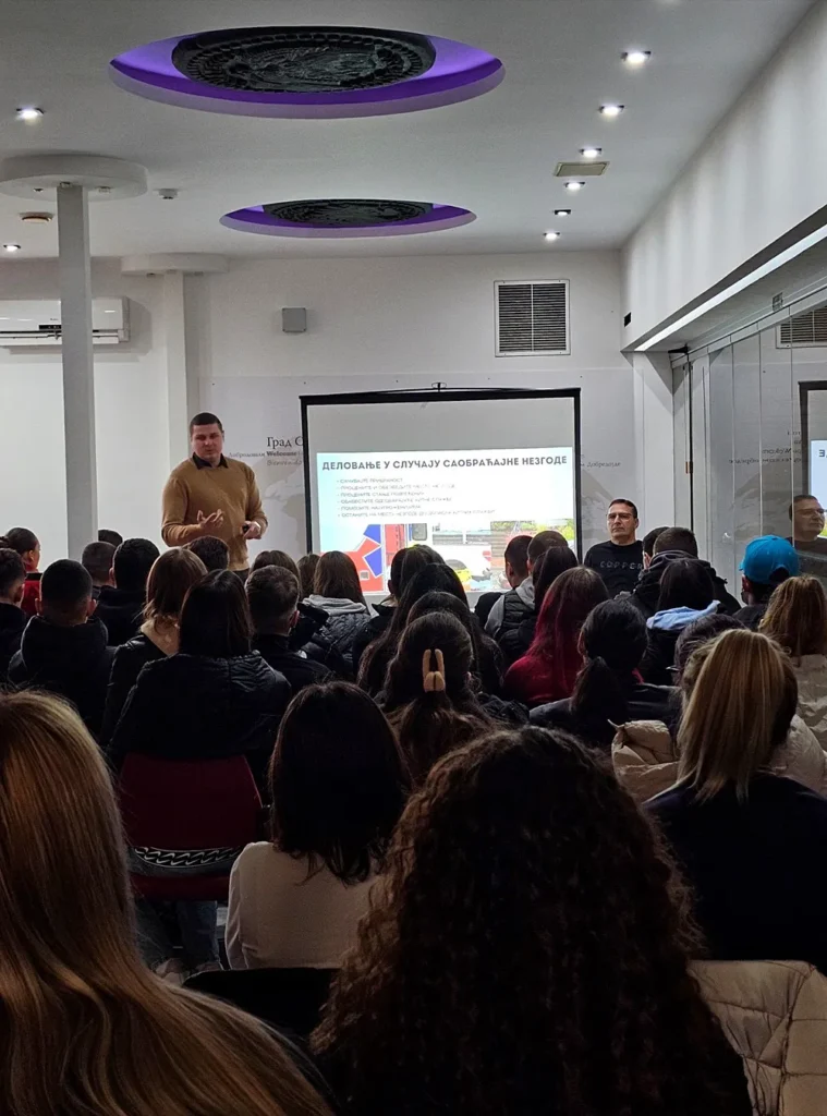 Vesti Tribina „Upozori, pa pomozi” 13/11/2025 Još iz kategorije Vesti: Da li ste u riziku? 13/11/2025 Grad donirao milion dinara za senzornu sobu i igralište ŠOSO „Radivoj Popović” 12/11/2025 Novi korisnici usluga kanalizacije u Laćarku 12/11/2025 SREMSKA MITROVICA – Kampanja „Upozori, pa pomozi” Agencije za bezbednost saobraćaja Republike Srbije počela je našem gradu, u saradnji sa Crvenim krstom Srbije i Gradskom upravom za E-poslove i urbanu mobilnost. Tribina je bila usmerena na podizanje svesti o značaju bezbednog ponašanja u saobraćaju kod mladih Interaktivna tribina realizovana je kroz tri segmenta: Obaveze vozača u slučaju saobraćajne nezgode, Lična ispovest učesnika koji je preživeo saobraćajnu nezgodu i Predavanje i kratka obuka o pružanju prve pomoći, koje realizuju stručnjaci Crvenog krsta. Nikola Novaković u ime Agencije za bezbednost saobraćaja zahvalio se domaćinima sa kojima sarađuje i sa kojima je zajedno realizovao ovu kampanju: „Cilj je da obiđemo bar 10 lokalnih samouprava i da pričamo upravo sa mladim vozačima, odnosno vozačima koji su stekli pravo, položili vožnju ili su u procesu polaganja za dozvolu. Pričamo o tome koliko je važno kako da postupaju ako se zateknu na mestu saobraćajne nezgode, postoje neki koraci koje moraju da ispoštaju kako bi bili bezbedni i kako ne bi i svoj život ugrozili. Pored predstavljanja zakonskih normi, Slaviša Savić koji je nažalost nastradao u jednoj saobraćajnoj nezgodi ispričao je i svoju ličnu priču, pričao je o povredama koje nastupaju posle saobraćajne nezgode. Tu su i bile kolege iz Crvenog krsta koje su održale kratku obuku kako treba postupati u slučaju kada se zadesite na mestu saobraćajne nezgode.” Što brže i pravilnije reagujemo na mestu saobraćajne nezgode, naglasio je on, veće su šanse da se spase nečiji život. Zato je važno najpre obezbediti mesto nezgode i upozoriti druge učesnike u saobraćaju, a zatim pružiti pomoć povređenima. Upravo zato ove aktivnosti usmeravaju ka mladima, jer sticanjem znanja, mladi stiču i samopouzdanje da reaguju smireno, sigurno i odgovorno kada je najpotrebnije. Kroz edukativne tribine uče ih da je redosled najvažniji: najpre upozori, zatim pomozi. Slaviša Savić je ispričao svoju ličnu priču o posledicama saobraćajne nesreće: „Dolazim iz okoline, iz sela Glušci, nalazim se u invalidskim kolicima i moja invalidnost je posledica saobraćajne nezgode koju sam doživeo kao učenik trećeg razreda srednje škole. Danas sam ovde sa ljudima iz agencije i sa ljudima iz prve pomoći kako bi mladima pokazao sa koliko ozbiljnih posledica može da se susretne neko ko ne poštuje saobraćajne propise, ko doživi saobraćajnu nezgodu i da iz sopstvenog ugla kažem koliko su ozbiljne te posledice, naravno i da ukažem na bitnost pravovremene i adekvatne prve pomoći koja u velikom slučaju može da spasi život, ali tako da može da doprinese da povrede i posledica povreda budu značajno manje.” Saobraćajna nezgoda može se dogoditi bilo kada i bilo kome. U tim trenucima, upravo prvi koraci onih koji se zateknu na licu mesta mogu odlučiti ishod. Zato je glavni cilj ovih edukacija da mladi, pre svega srednjoškolci, nauče kako da pravilno reaguju u slučaju saobraćajne nezgode i kako da obezbede mesto nezgode kako bi se sprečilo nastajanje sekundarnih nezgoda. Agencija za bezbednost saobraćaja podseća da je svaki učesnik u saobraćaju, koji se nađe na mestu saobraćajne nezgode, dužan da zaštiti sebe i druge i spreči sekundarne nezgode. Zato je važno podsetiti sve učesnike u saobraćaju na korake koje je neophodno preduzeti u takvoj situaciji: 1. Isključite motor svog vozila, kako bi smanjio rizik od nastanka požara ili eksplozije 2. Uključite sve pokazivače pravca, kako bi ostali učesnici u saobraćaju bili obavešteni o postojanju mesta nezgode 3. Prilikom izlaska iz vozila i stupanja na kolovoz, obavezno nosite svetloodbojni prsluk 4. Postavite sigurnosni trougao na bezbednom rastojanju od mesta saobraćajne nezgode, što znači najmanje 50 m na putu van naselja, najmanje 10 m na putu u naselju i najmanje 100 metara udaljenosti na auto-putu 5. Obavestite hitne službe – policiju i hitnu pomoć 6. Pomozite najugroženijima u skladu sa svojim znanjem, sposobnostima i mogućnostima, 7. Ostanite na mestu nezgode do dolaska policije.