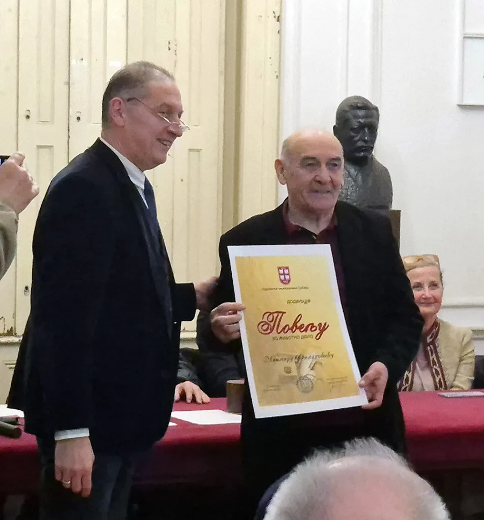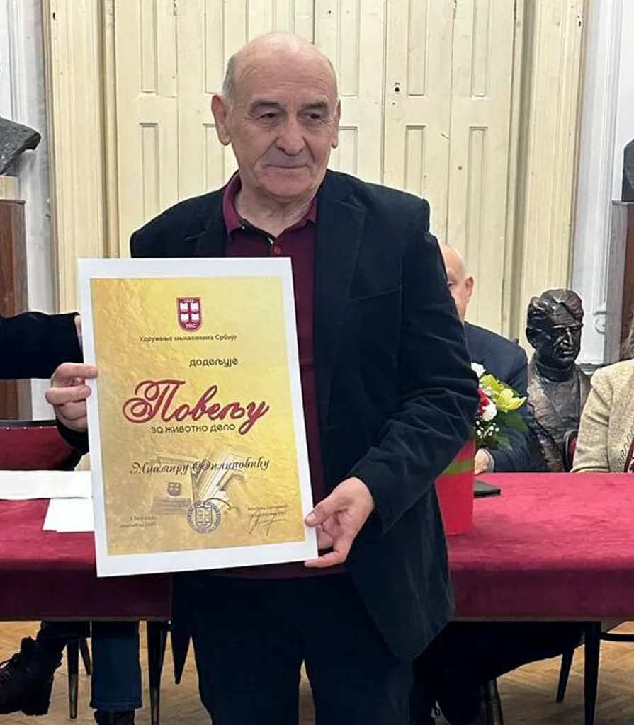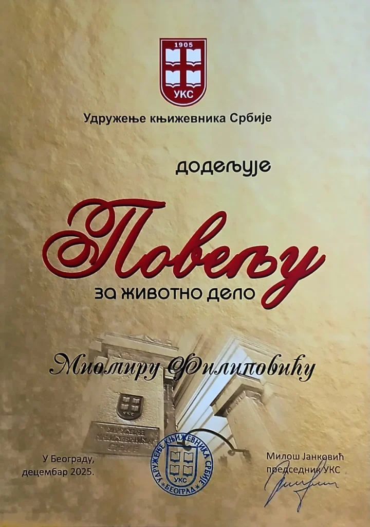 Vesti Miomir Filipović Fića nagrađen Poveljom za životno delo UKS 25/12/2025 Još iz kategorije Vesti: Nova pravila u centru grada: Teretna vozila samo noću u ulici Kralja Petra I 16/01/2026 JKP „Toplifikacija”: Grejanje ostaje uključeno 24 sata dnevno 15/01/2026 Novi podovi u svim učionicama OŠ „Slobodan Bajić Paja” 12/01/2026 BEOGRAD – Novinar i književnik iz Sremske Mitrovice, Miomir Filipović Fića, dobitnik je Povelje za životno delo koju dodeljuje Udruženje književnika Srbije. U bogatoj riznici priznanja za kulturno i novinarsko stvaralaštvo, Miomir Filipović ima i Sretenjski orden, Vukovu nagradu, Zlatnu povelju za novinarstvo, kao i povelju Pedagoškog saveza Srbije. Ovo priznanje svrstava Filipovića među ovogodišnje laureate jedne od najstarijih i najuglednijih književnih organizacija na Balkanu, koja ove godine obeležava 120 godina postojanja. Miomir Filipović Fića rođen je 5. februara 1954. godine u mačvanskom selu Radenković. Osnovnu školu završio je u rodnom mestu, a srednju u Sremskoj Mitrovici. Poznat je i kao posvećeni čuvar narodnog stvaralaštva, osnivač brojnih kulturnih manifestacija i udruženja širom Srbije. Primajući nagradu, Filipović je istakao da mu priznanje predstavlja veliku čast i potvrdu pedesetogodišnjeg rada: „Ova nagrada za mene je velika radost i poštovanje prema mom delu koje sam činio 50 godina. Naredne godine biće 50 godina od kako sam počeo da se bavim medijima, javnim nastupima, a ove godine proslavljamo 120 godina nastarije književne organizacije na Balkanu, Udruženja književnika Srbije. Meni je pripala velika čast da sam mogao i da kažem nešto pred mojim kolegama, piscima. Pisci treba da pišu, da ostavljaju trag, jer samo taj trag je vredan potomaka, pogotovo praunuka, unuka i čukununuka. Sve ostalo, osim knjige, ako date, oni to brzo zaborave,” istakao je Miomir Filipović Fića. Novinarsku školu Jugoslovenskog instituta za novinarstvo završio je u Beogradu, dok je u Novom Sadu stekao zvanje fudbalskog trenera. U mladosti se aktivno bavio fudbalom, a paralelno je bio angažovan u oblasti kulture, gde je režirao amaterske pozorišne predstave i vodio kulturno-umetnička društva. U rodnom selu obnovio je biblioteku osnovanu 1924. godine, a tokom života sakupio je nekoliko hiljada novih i polovnih knjiga, koje je, posredstvom „Knjige solidarnosti” Radio Beograda, poklanjao bibliotekama u seoskim sredinama i manastirima širom Srbije. Član je Udruženja književnika Srbije i Udruženja novinara Srbije. Godine 2026. obeležava 50 godina stvaralačkog rada u novinarstvu i književnosti. Profesionalnu novinarsku karijeru gradio je kao novinar novosadskog „Dnevnika”, kao i dopisnik Radio Beograda i „Politike” iz Srema. Pisao je i za najtiražnije i najuglednije nedeljne i periodične listove u tadašnjoj Jugoslaviji, među kojima su „Ilustrovana politika”, „Duga”, „Nada”, kao i za zagrebačku „Arenu”, „Nedeljski dnevnik” u Ljubljani, te listove „Una” i „San” u Sarajevu. Svi ovi mediji imali su stotine hiljada prodatih primeraka širom Jugoslavije i među našim ljudima u inostranstvu, a redakcije su njegov rad višestruko nagrađivale. Više godina sarađivao je sa Radio Beogradom, kako kao dopisnik iz Srema, tako i kao autor i saradnik u popularnim emisijama. Posebno se izdvaja emisija „Selo veselo”, čiji je autor i urednik bio Jovan Aleksić, u kojoj je Filipović pisao tekstove i izvodio duhovite dosetke, što je kasnije objedinjeno u posebnoj knjizi. Njegov rad na televiziji, iako nikada nije bio stalno zaposlen, obuhvata višegodišnju saradnju sa osnivačima Televizije Beograd Mićom Orlovićem i snimateljem Čedom Filipovićem. Po njegovim scenarijima realizovano je više dokumentarnih i afirmativnih filmova iz oblasti opšteg kulturnog stvaralaštva srpskog naroda, u režiji Dragana Jerkovića, predavača na Akademiji umetnosti i nekadašnjeg direktora Televizije Beograd. Miomir Filipović Fića osnivač je i glavni urednik „Seoskih novina”, jedinog lista u Srbiji posvećenog kulturi sela, koji se besplatno distribuira u više stotina sela kulturno-umetničkim društvima, udruženjima žena, sportskim klubovima, mesnim zajednicama, lovačkim društvima i ekološkim udruženjima. Tokom višedecenijskog rada, Filipović je obišao više od 3.000 sela u Srbiji i objavio više od 50 knjiga, ostavljajući neizbrisiv trag u oblasti novinarstva, književnosti i kulturne baštine.