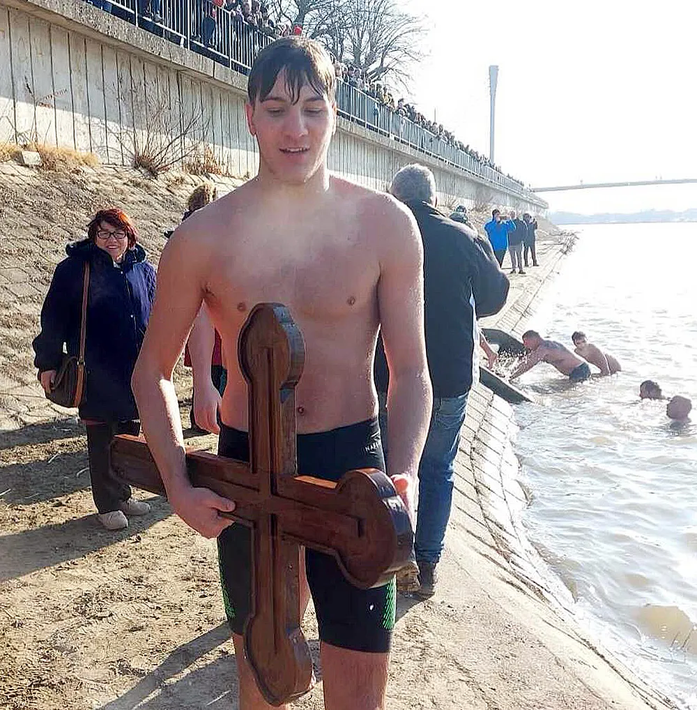 Vesti Mateja Vidović četvrti put zaredom osvojio Časni krst 19/01/2026 Još iz kategorije Vesti: Sabor plivanja đaka za Časni krst 18/01/2026 Nova pravila u centru grada: Teretna vozila samo noću u ulici Kralja Petra I 16/01/2026 JKP „Toplifikacija”: Grejanje ostaje uključeno 24 sata dnevno 15/01/2026 SREMSKA MITROVICA – Tradicionalno bogojavljensko plivanje za Časni krst održano je danas, a do svetinje je prvi, četvrti put zaredom, doplivao sedamnaestogodišnji Mitrovčanin Mateja Vidović. Obeležavanje velikog hrišćanskog praznika Bogojavljenja započelo je svetom liturgijom u Hramu Svetog prvomučenika i arhiđakona Stefana, nakon čega je litija krenula ka keju na reci Savi. Tačno u podne usledilo je tradicionalno plivanje za Časni krst, u kojem je učestvovalo više od 100 plivača i plivačica iz Sremske Mitrovice, okolnih mesta, regiona, ali i dijaspore. Mateja Vidović je, uprkos hladnoj vodi, prvi stigao do krsta i još jednom potvrdio dominaciju u ovoj manifestaciji. Kao pobednik, dobio je zlatnik, prenosivi krst na čuvanje u trajanju od godinu dana, kao i sablju i plašt, dok su svi učesnici nagrađeni majicama, uzdarjem i krstićima. Bogojavljensko plivanje u Sremskoj Mitrovici održano je 27. put, u organizaciji Grada Sremska Mitrovica, Svebor družine „Sveti Dimitrije” i Hrama Svetog prvomučenika i arhiđakona Stefana, uz blagoslov Njegovog visokopreosveštenstva arhiepiskopa sirmijskog i mitropolita sremskog gospodina Vasilija, kao i uz prisustvo pripadnika Vojske Srbije i Ministarstva unutrašnjih poslova. Praznik Bogojavljenje obeležava se u znak sećanja na dan kada je Jovan Krstitelj krstio Isusa Hrista u reci Jordan, kada se, prema hrišćanskom verovanju, javio glas Božji. Simbolično plivanje za Časni krst, na deonici dugoj 33 metra – što predstavlja broj godina Hristovog života – ima za cilj dobijanje Božjeg blagoslova i priziva zdravlja i zajedništva. Na Bogojavljenje se u svim hramovima osveštava voda, za koju se veruje da ima duhovna i lekovita svojstva, a vernici se međusobno pozdravljaju rečima: „Bog se javi”, uz odgovor: „Vaistinu se javi”. Ovim praznikom završavaju se i takozvani nekršteni dani, započeti na Božić.