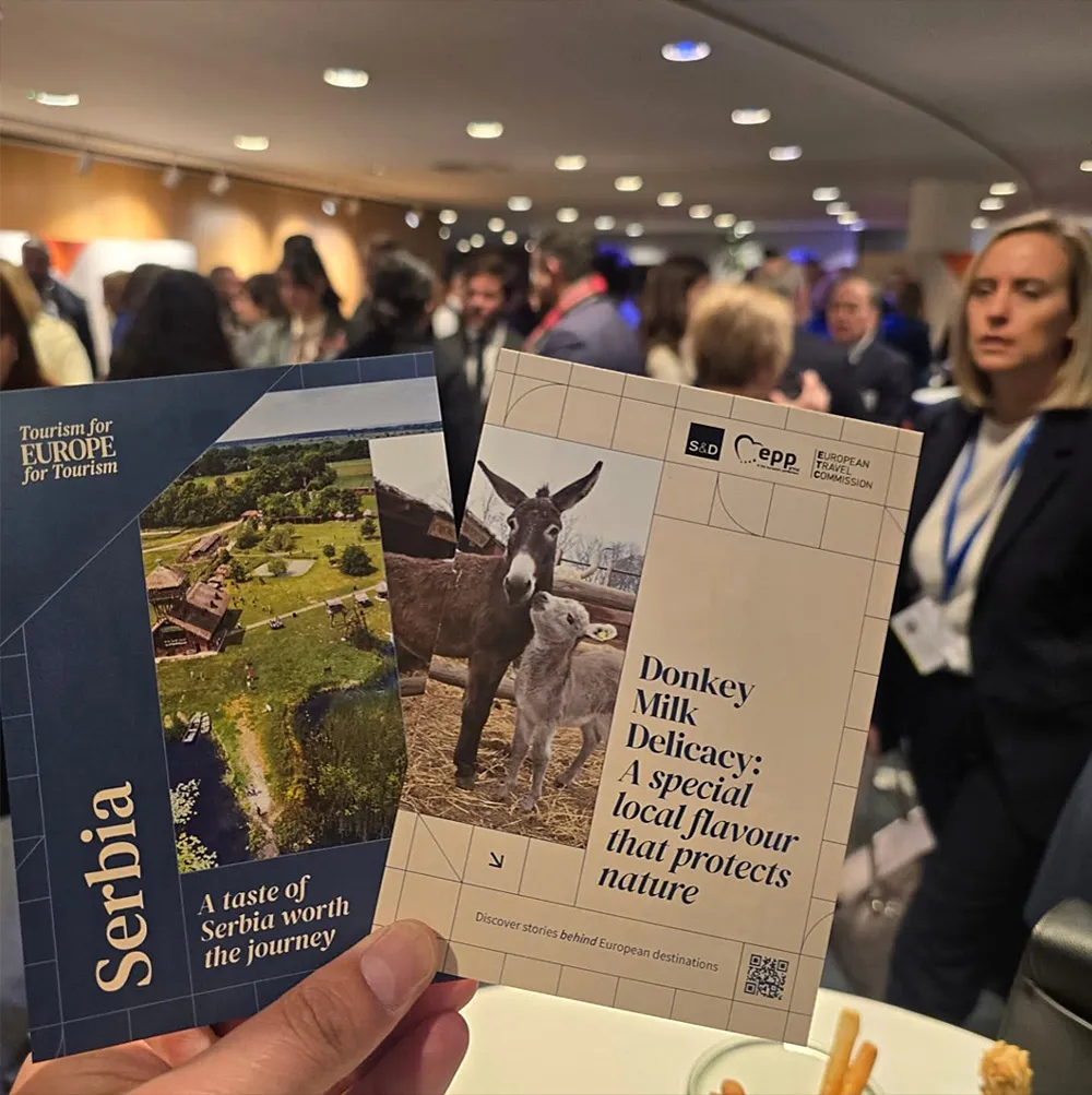 Vesti SRP „Bara Zasavica” oduševila Brisel: Magareće mleko i regenerativni turizam iz Srbije u srcu Evrope 28/01/2026 Još iz kategorije Vesti: Grad stao iza znanja: Svetosavske povelje najuspešnijima 26/01/2026 Zajedno ka zapošljavanju i reintegraciji osuđenih lica 26/01/2026 Rana prevencija spasava živote 26/01/2026 BRISEL – Specijalni rezervat prirode Zasavica predstavila je svoje proizvode od magarećeg mleka na prestižnoj izložbi „Tourism for Europe” u Evropskom parlamentu u Briselu. Ovaj događaj, organizovan u saradnji sa Evropskom turističkom komisijom @visit_europe, okupio je ukupno 35 projekata iz cele Evrope, a SRP Zasavica se izdvojila kao primer regenerativnog turizma iz Srbije koji ne samo da ne uništava, već aktivno popravlja i oplemenjuje mesto koje posetioci posećuju. Regenerativni turizam na Specijalnom rezervatu prirode „Bara Zasavica” ide korak dalje od održivog turizma i aktivno poboljšava i obnavlja ekosisteme, kulturu i lokalnu zajednicu. Posetioci su mogli da se upoznaju sa proizvodima od magarećeg mleka, ali i sa inovativnim pristupom očuvanju prirode i lokalne zajednice kroz održivi turizam. Predstavljanje u Briselu još jednom potvrđuje kvalitet i jedinstvenost srpskih turističkih i prehrambenih projekata na evropskom nivou.