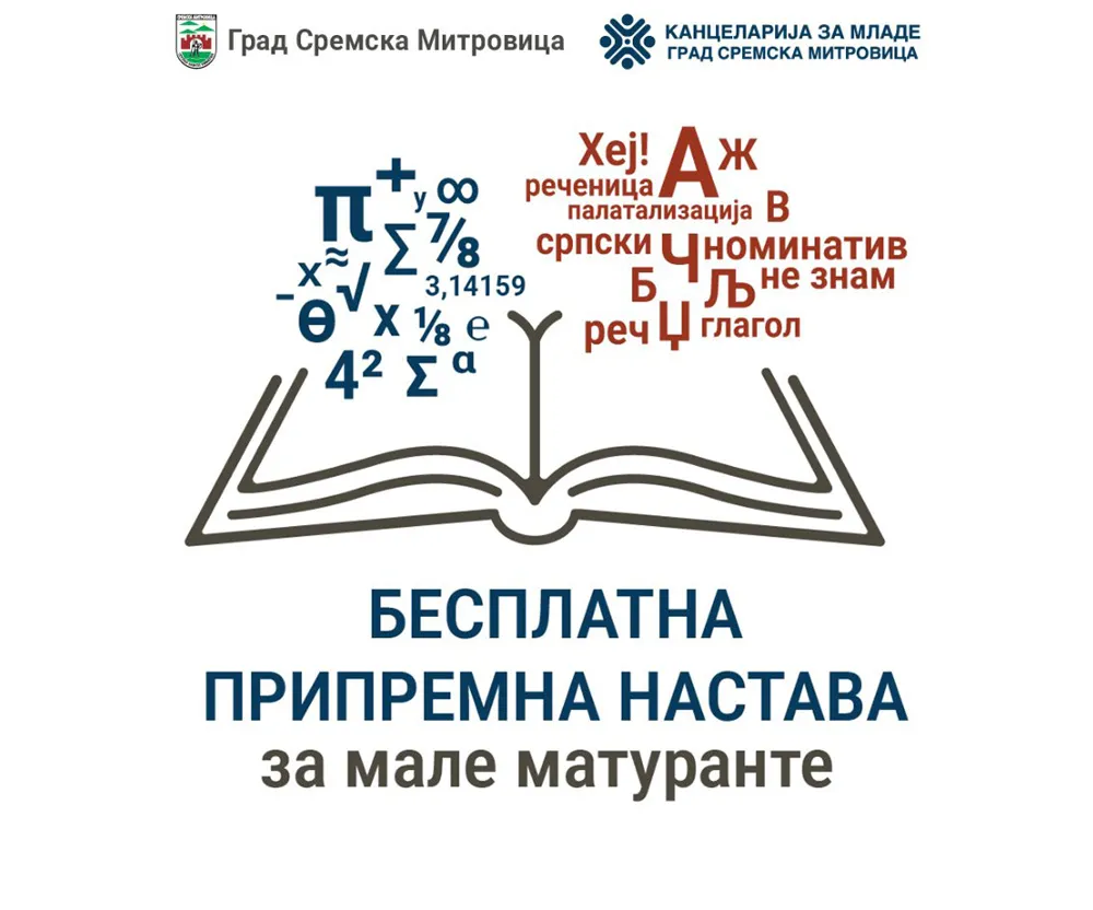 SREMSKA MITROVICA – Kancelarija za mlade uz podršku Grada Sremska Mitrovica organizuje BESPLATNU pripremnu nastavu za polaganje male mature iz srpskog jezika i matematike, za sve učenike osmih razreda sa teritorije grada.